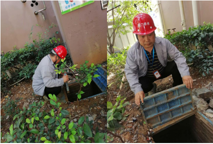 維修人員現(xiàn)場檢修破損水表箱
